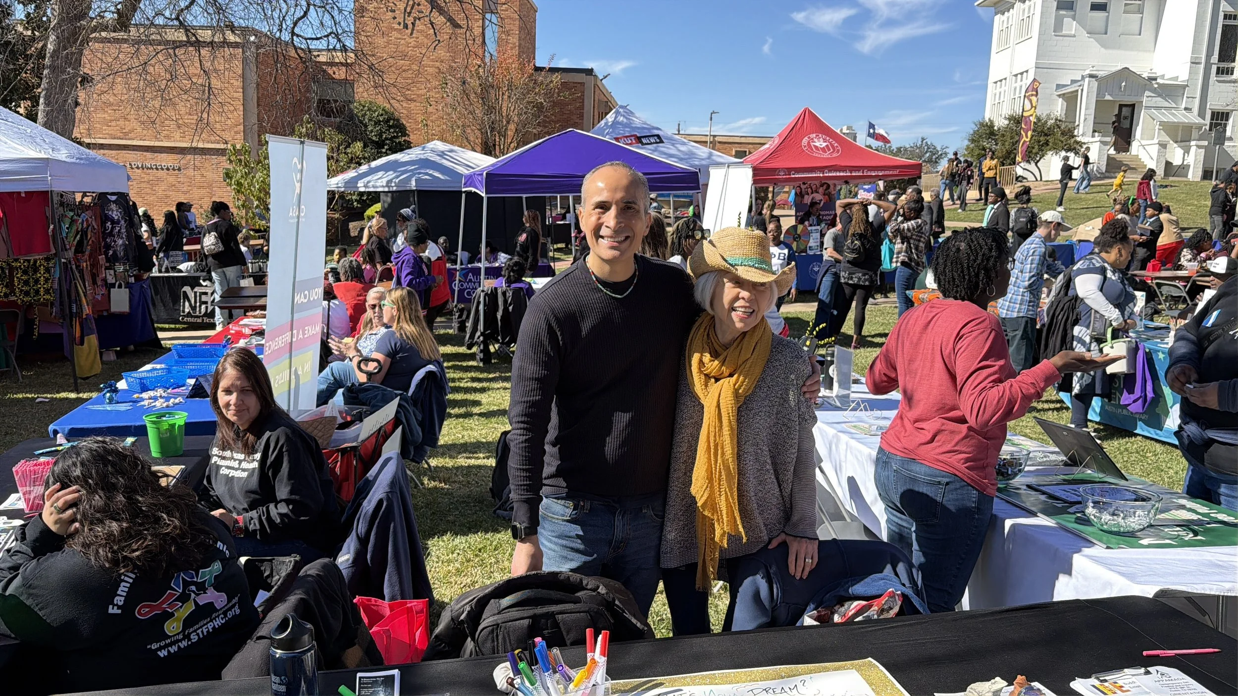 Huston-Tillotson University, established in 1875, is an HBCU and the oldest institution of higher learning in Austin. Its gently rolling landscape, historical buildings, and central location make it a perfect location for this event. The festival was scheduled at the end point on the route of the MLK Day March which began that morning on the steps of Texas State Capitol.