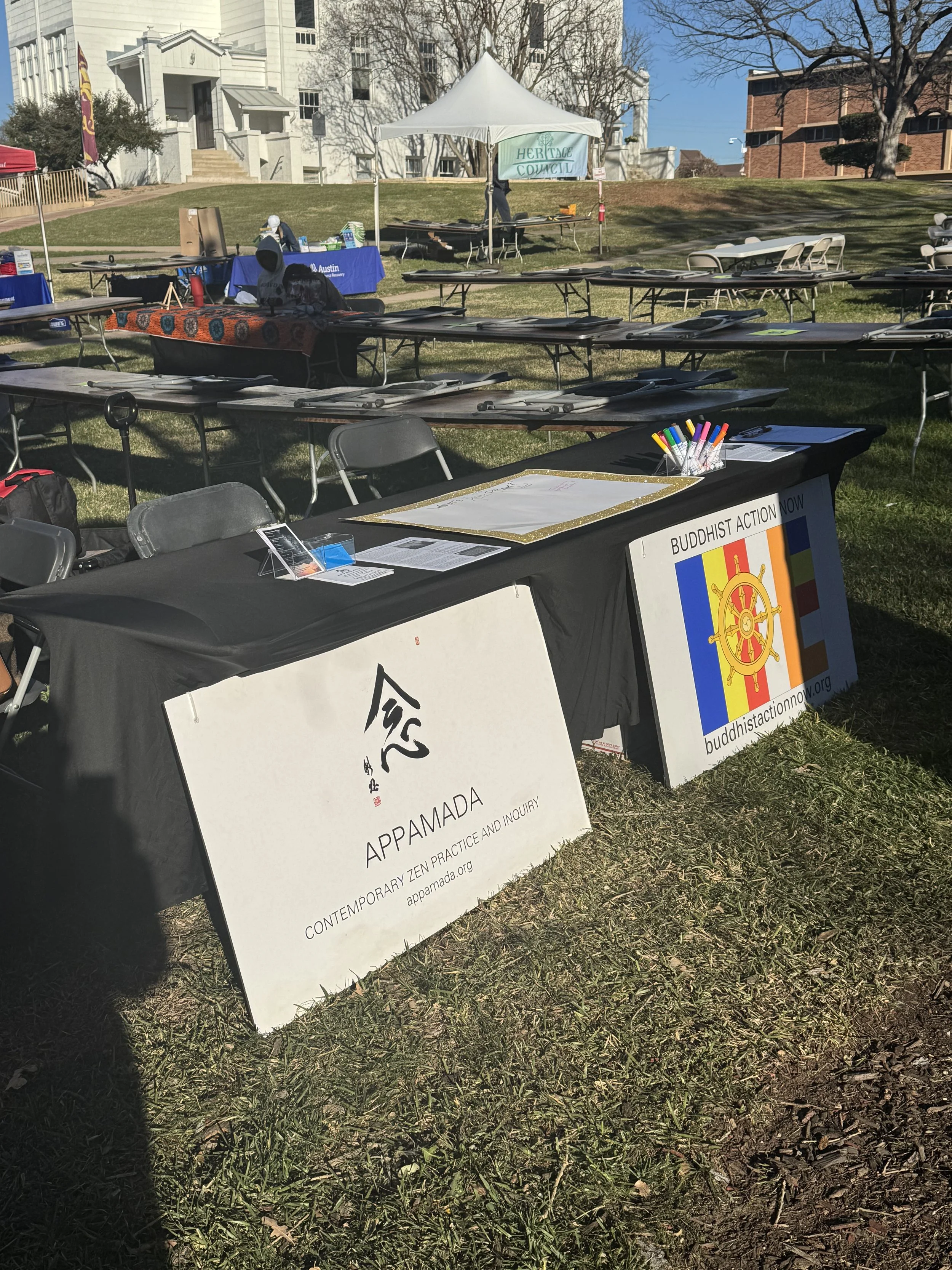 Our volunteers were onsite from 9:30 a.m. to 3:30 p.m. and all report having had great conversations with attendees who expressed interest in Buddhist Action Now, and in our meditation offerings at Appamada.